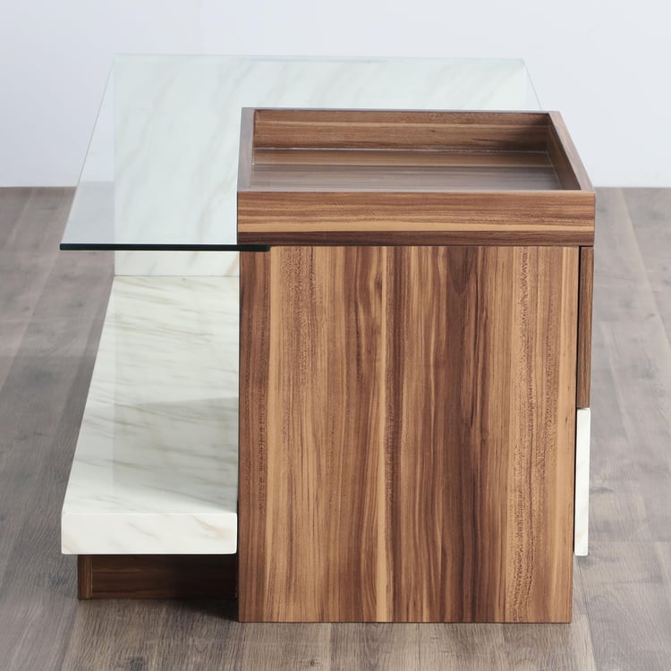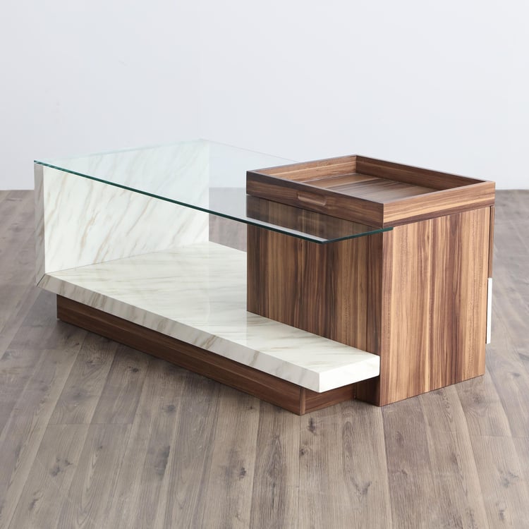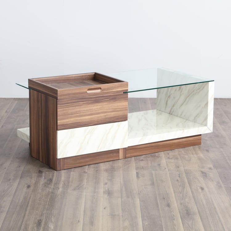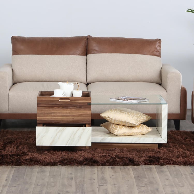 This coffee table is crafted with sturdy material and glass top. The sturdy base coupled with storage space is ready to conquer your furniture collection with its eye-pleasing look.