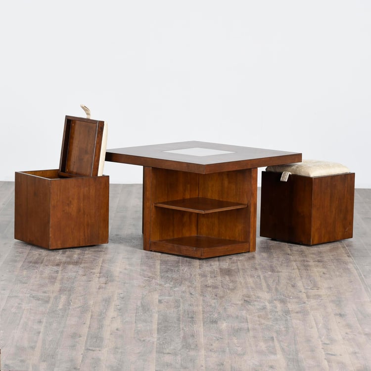 HOME CENTRE brings forth this convenient and contemporary coffee table to add to your living room decor. It comes with two stools along with additional storage, allowing you to utilize it with ease.;