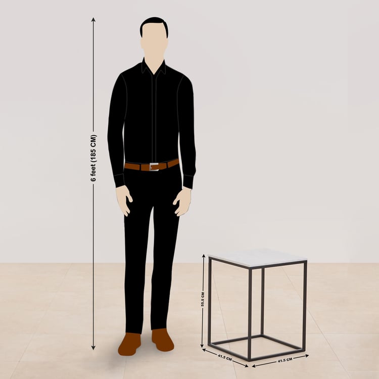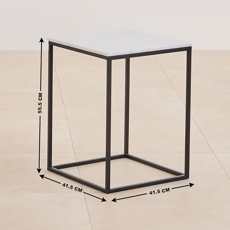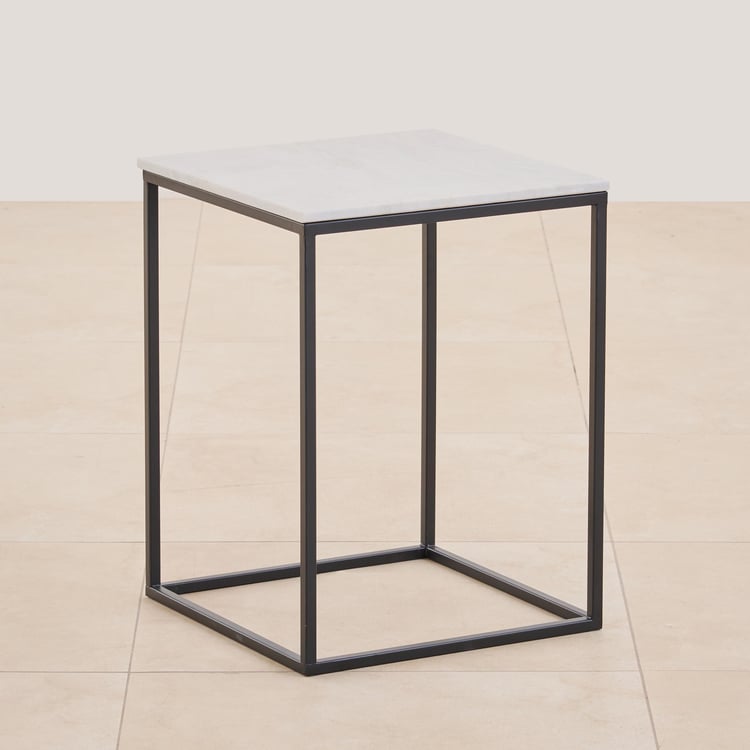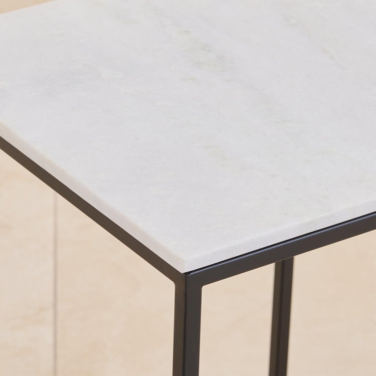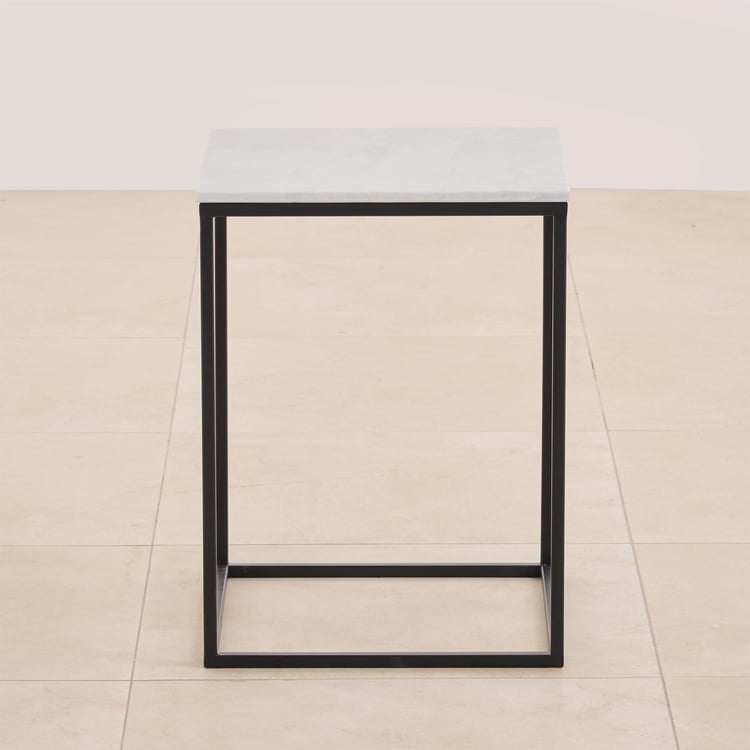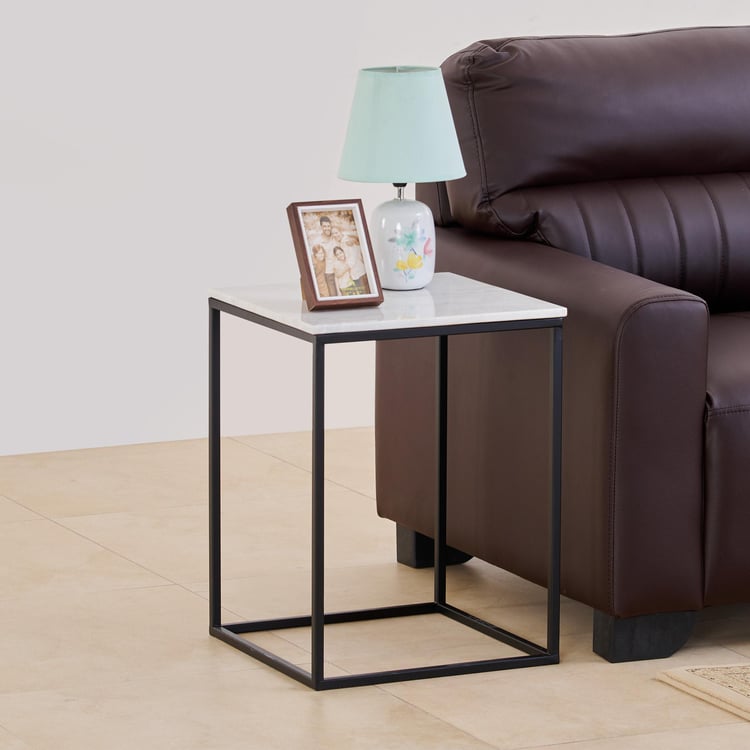Helios York Marble Top End Table - White and Black