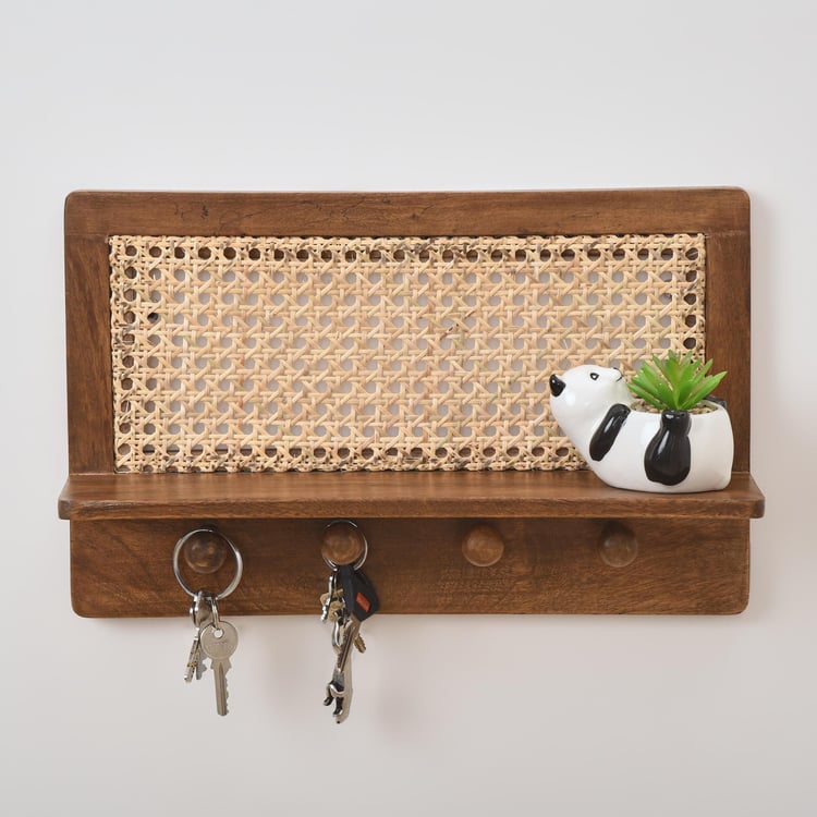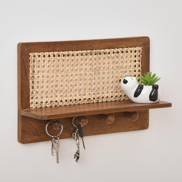 Cane Connection Mango Wood Key Shelf - Brown