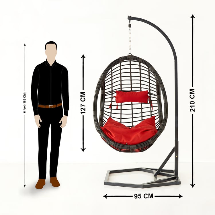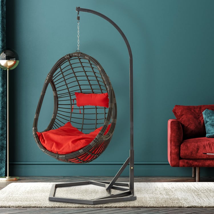 Helios Brezza Java Hanging Chair with Stand and Seat Cushions - Brown