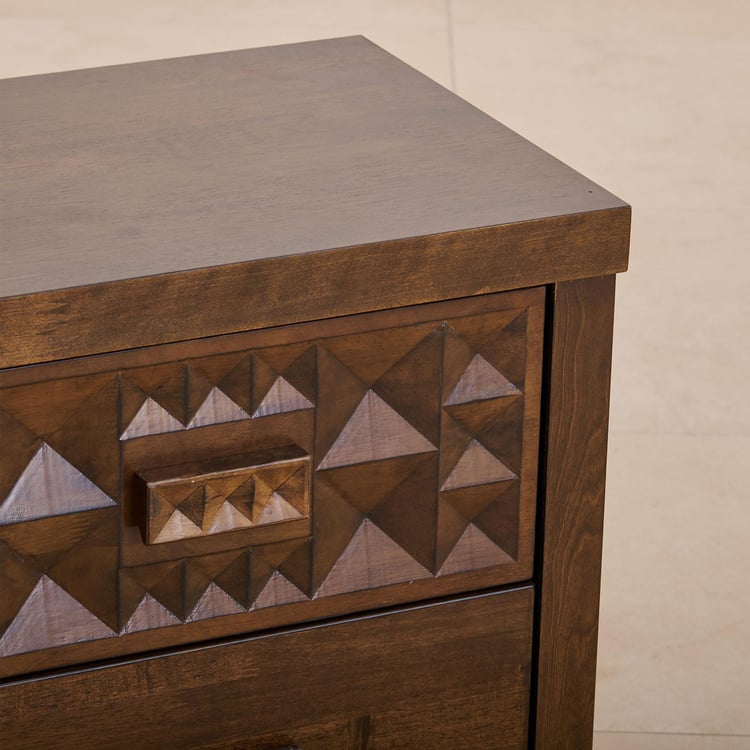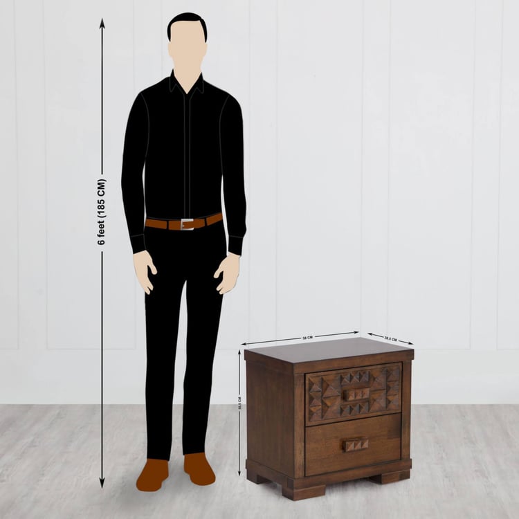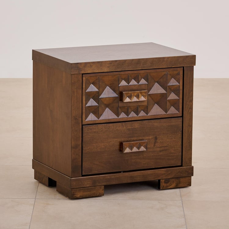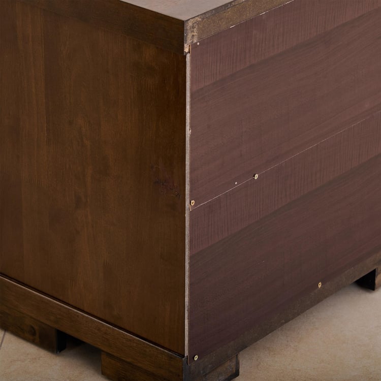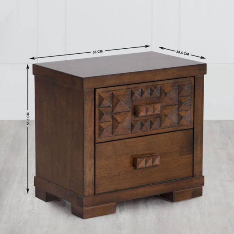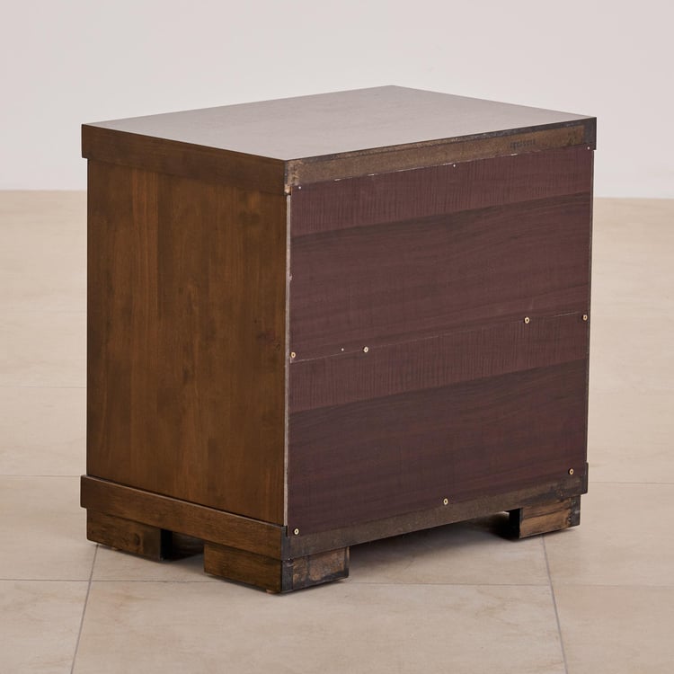 (Refurbished) Rio Solid Wood Bed Side Table with Drawers - Brown