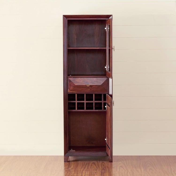 (Refurbished) Aarya Sheesham Wood Bar Cabinet - Brown