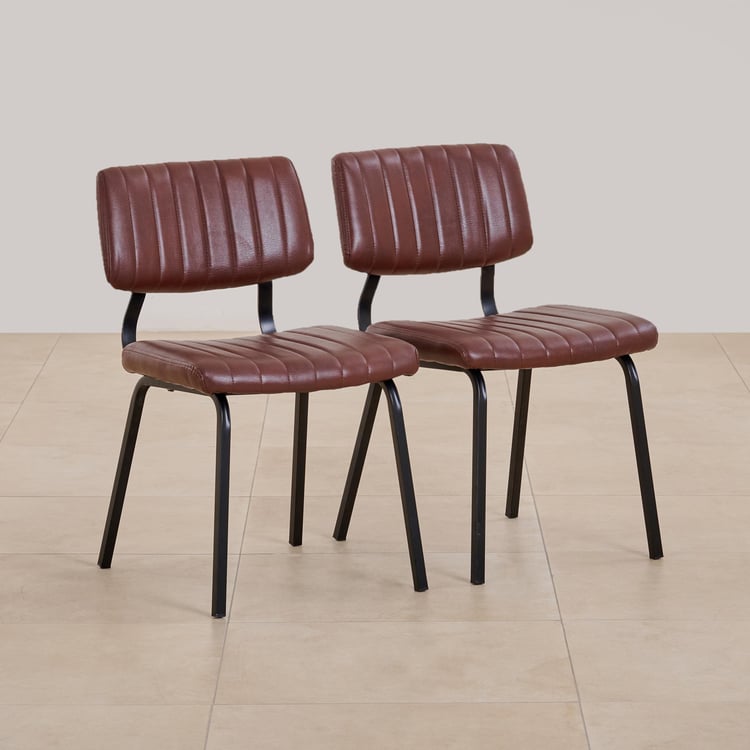 (Refurbished) Ajax Set of 2 Faux Leather Dining Chairs - Brown
