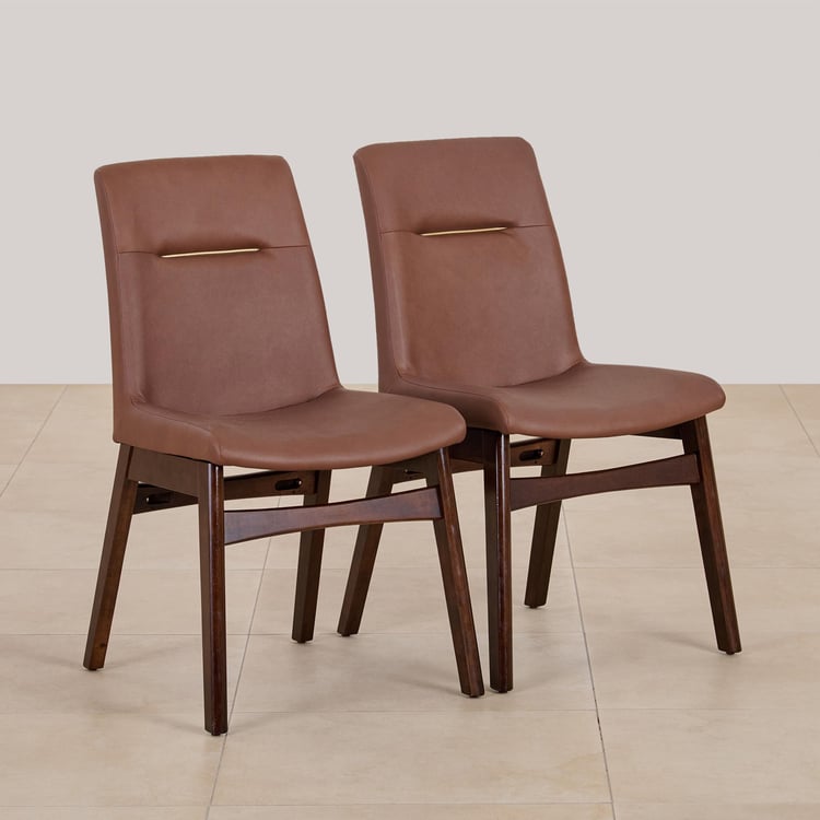 (Refurbished) New Valencia Set of 2 Faux Leather Dining Chairs - Brown