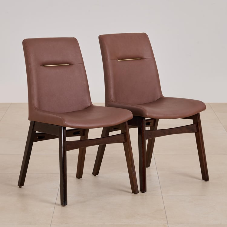 (Refurbished) New Valencia Set of 2 Faux Leather Dining Chairs - Brown