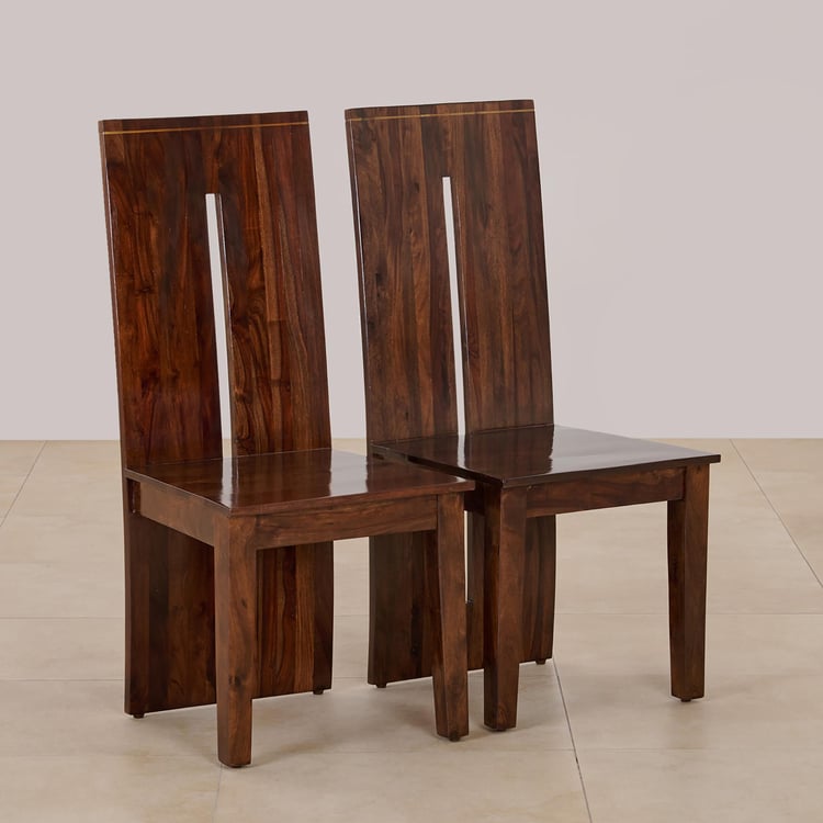 (Refurbished) Sattva Set of 2 Sheesham Wood Dining Chairs - Brown