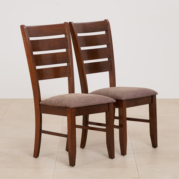 (Refurbished) Chunky Set of 2 Solid Wood Dining Chairs - Brown