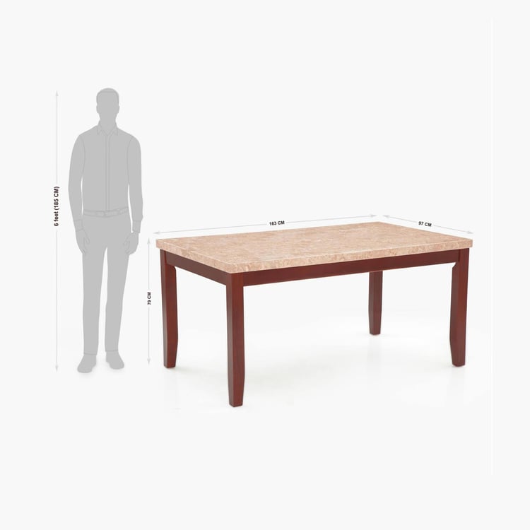 (Refurbished) Oxville Marble Top 6-Seater Dining Table - Brown