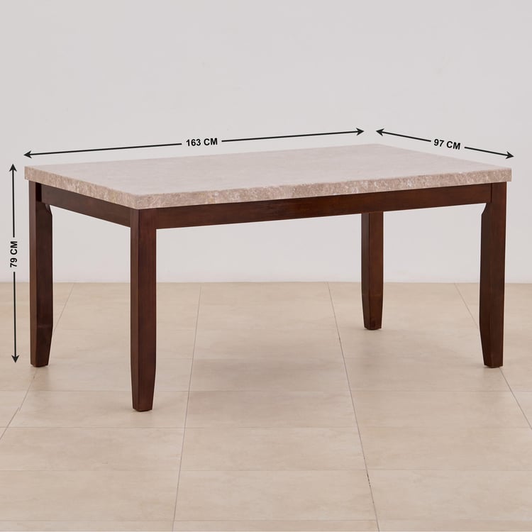 (Refurbished) Oxville Marble Top 6-Seater Dining Table - Brown