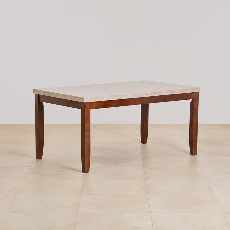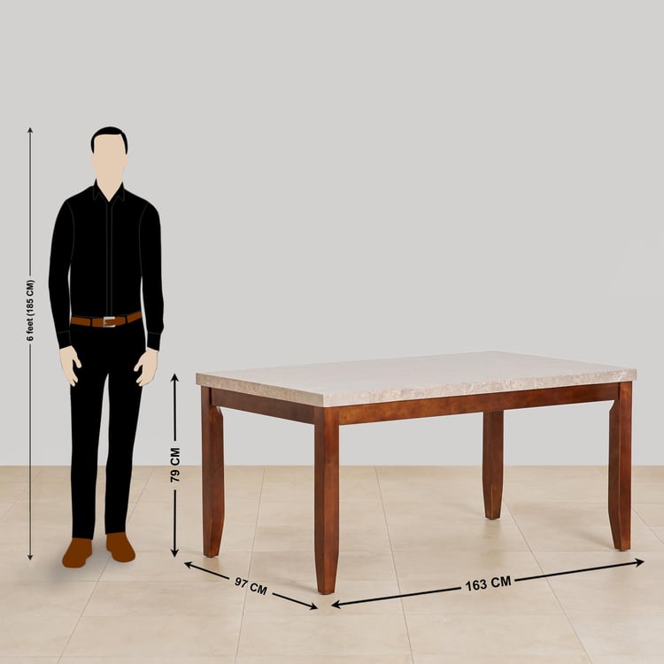 (Refurbished) Oxville Marble Top 6-Seater Dining Table - Brown