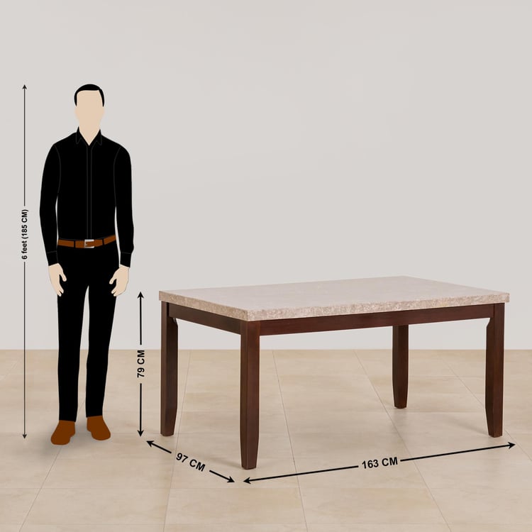 (Refurbished) Oxville Marble Top 6-Seater Dining Table - Brown