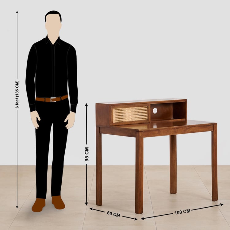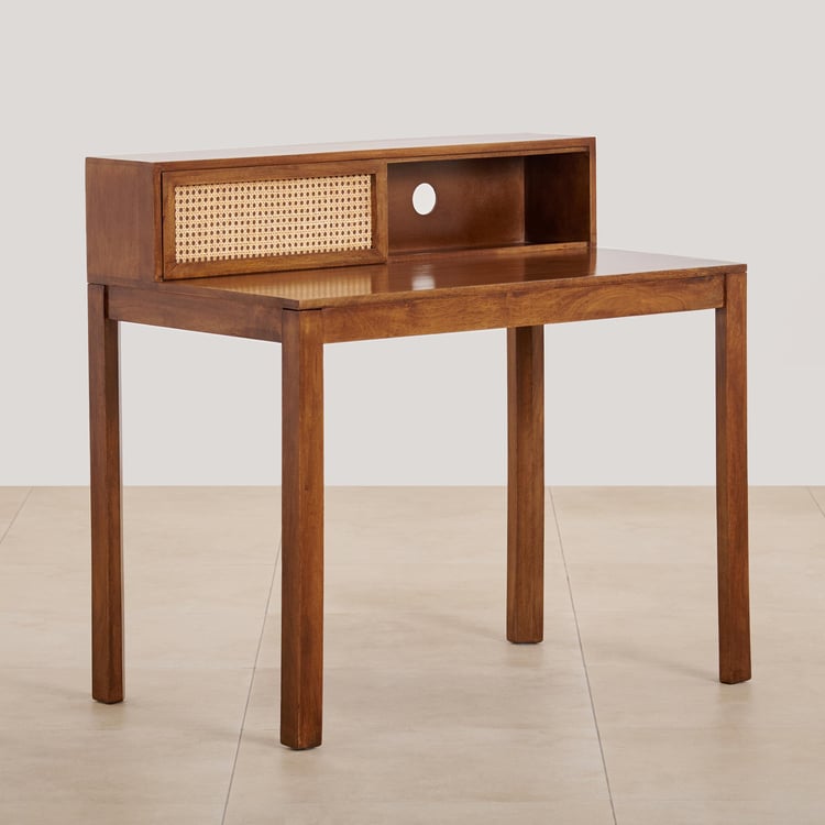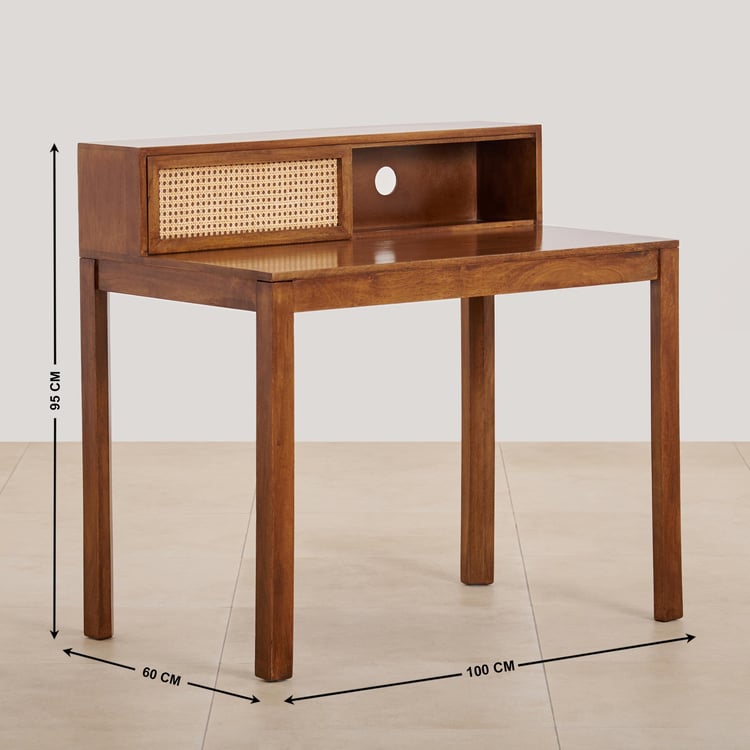 (Refurbished) Cane Connection Mango Wood Study Table - Brown