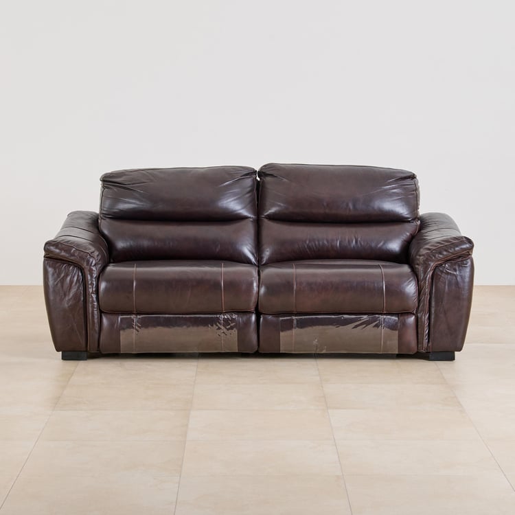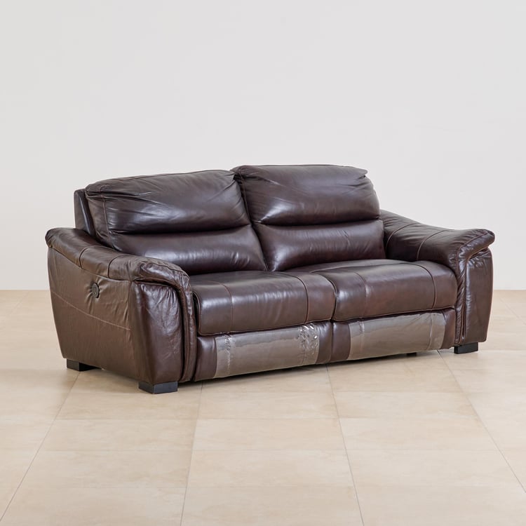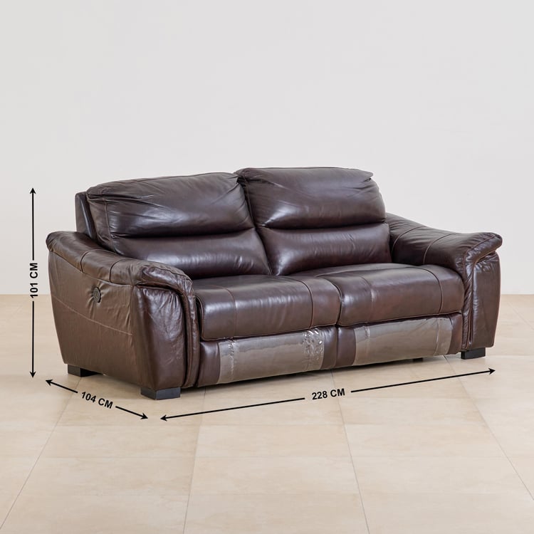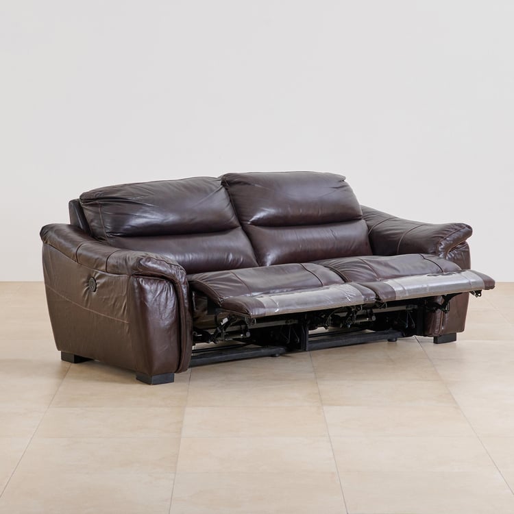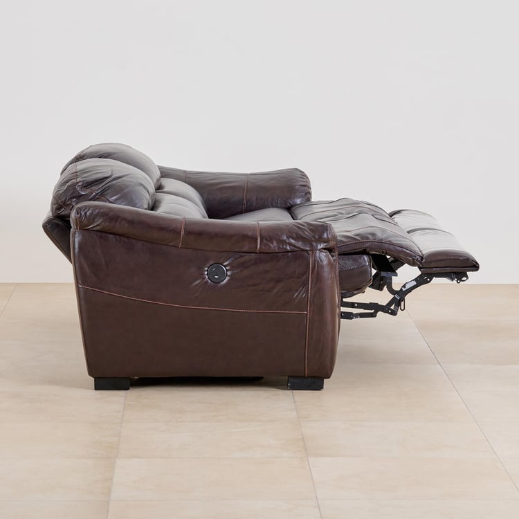 (Refurbished) Beta Half Leather 3-Seater Electric Recliner - Brown