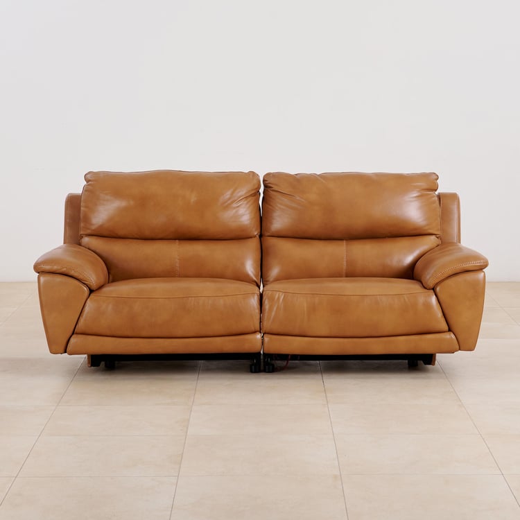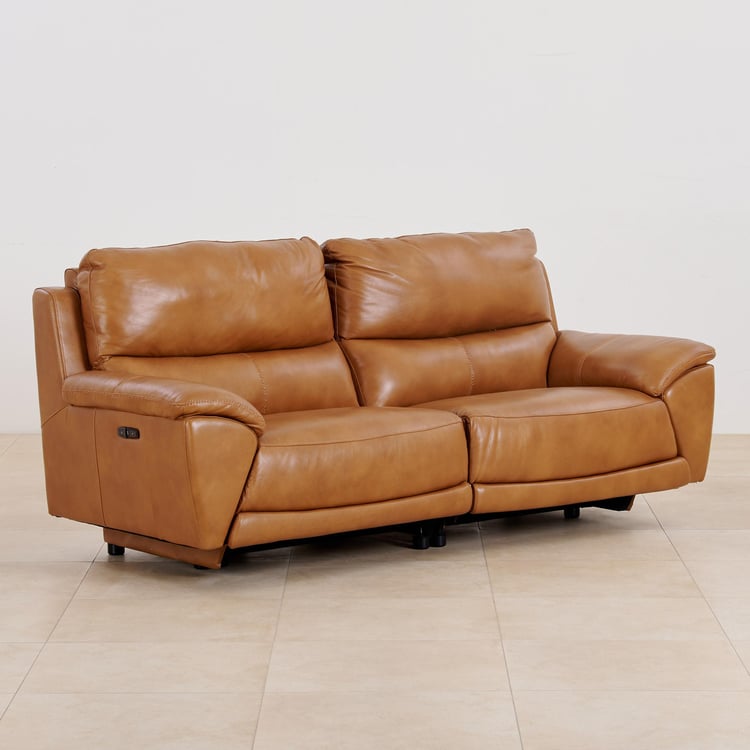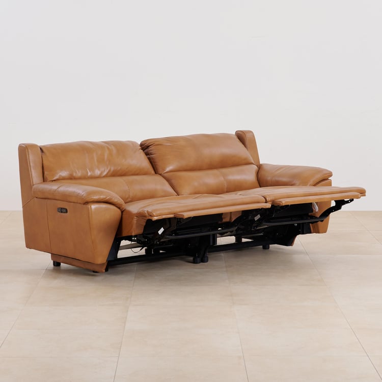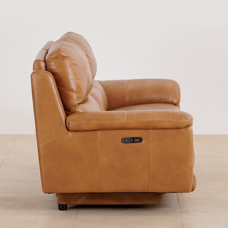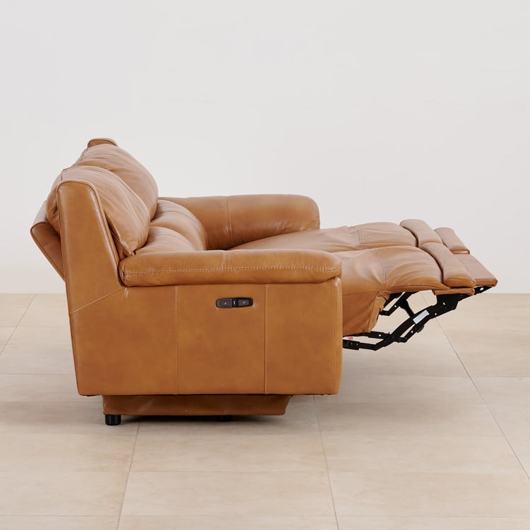 (Refurbished) Reims Half Leather 3-Seater Electric Recliner Sofa - Brown