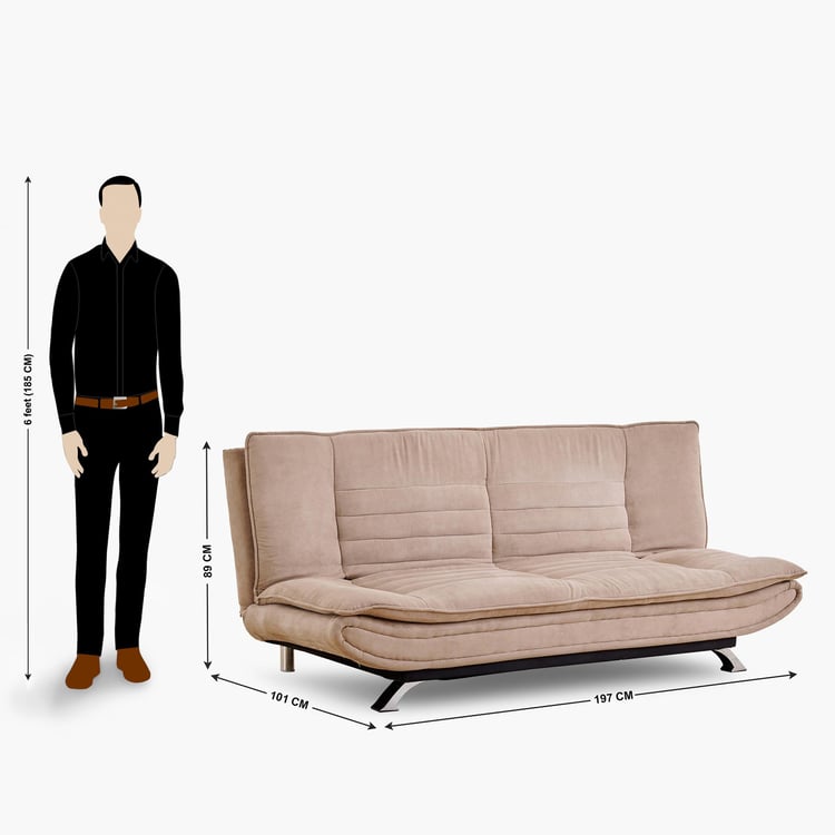 (Refurbished) Faith Fabric 3-Seater Sofa Bed - Brown