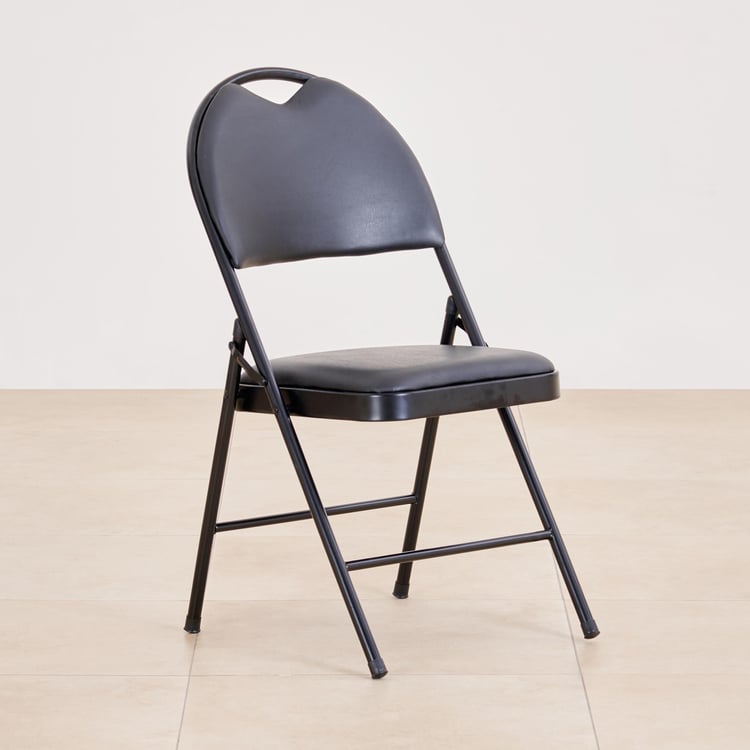 (Refurbished) Lex Faux Leather Folding Outdoor Chair- Black