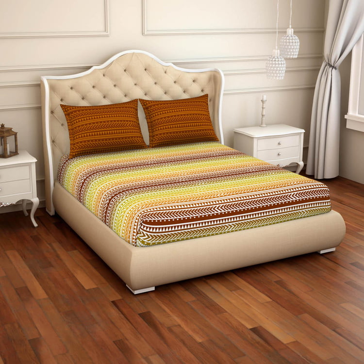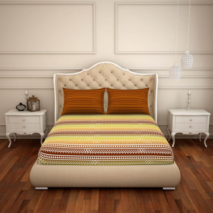 This vibrant and lightweight double bedsheet set of three pieces is defined by a modish print on the surface to impart a fresh appeal to your bedroom decor. Crafted from soft cotton, this comfortable set is easy to wash and maintain.