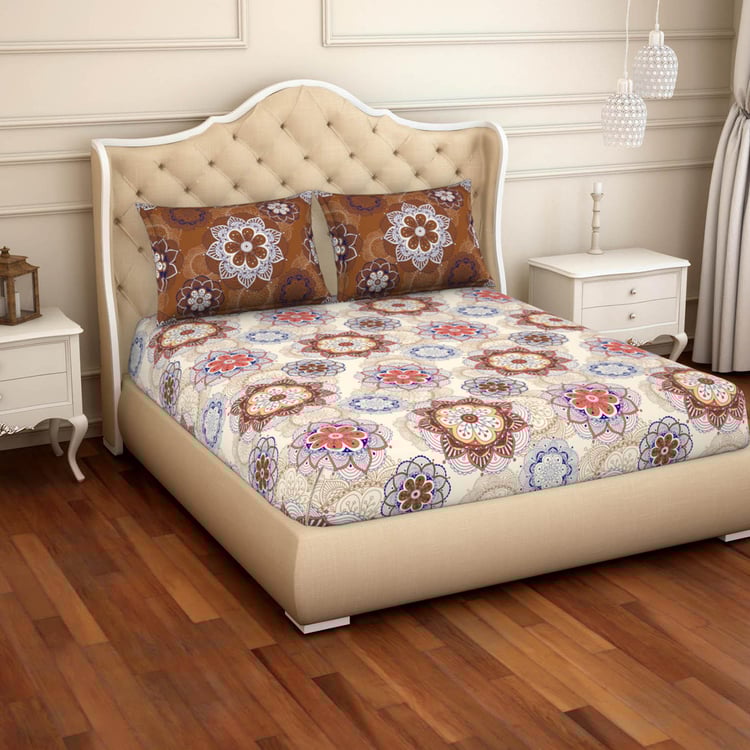 This vibrant and lightweight double bedsheet set of three pieces is defined by floral prints to impart a fresh appeal to your bedroom decor. Crafted from soft cotton, this comfortable set is easy to wash and maintain.