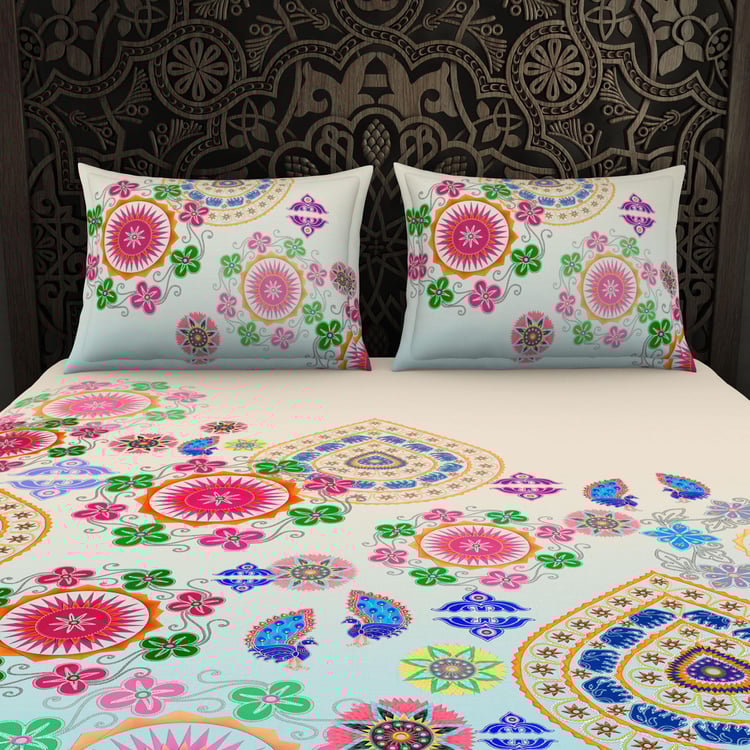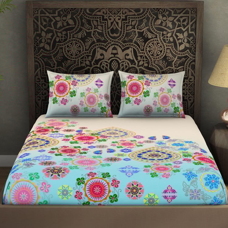 SPACES Rangana Padmapriya Blue Festive Printed Cotton Large Bedsheet Set - 3Pcs
