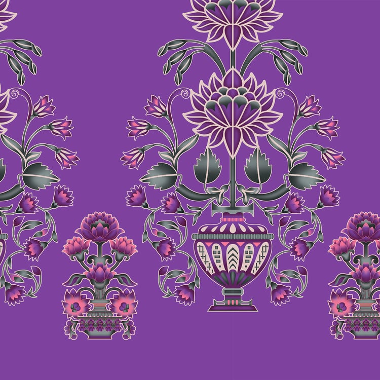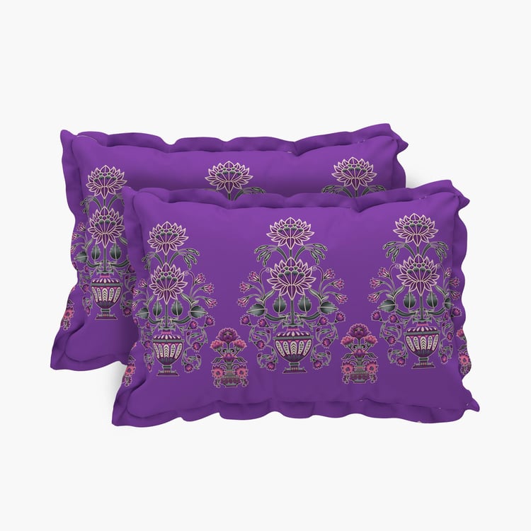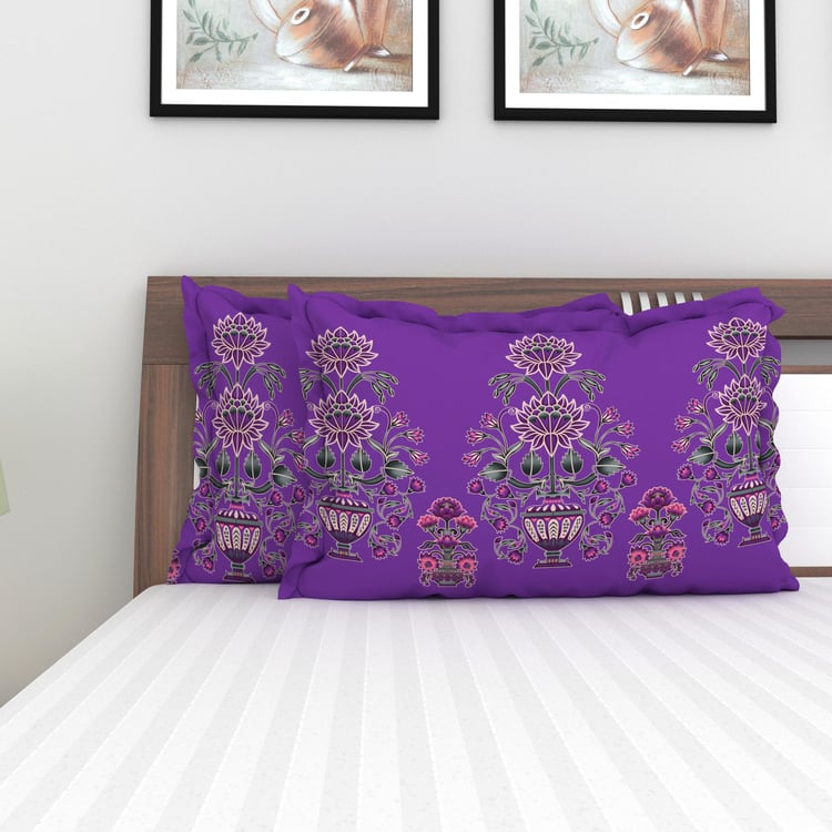 SPACES Miami Purple Printed Cotton Pillow Covers- 43x68cm- Set of 2