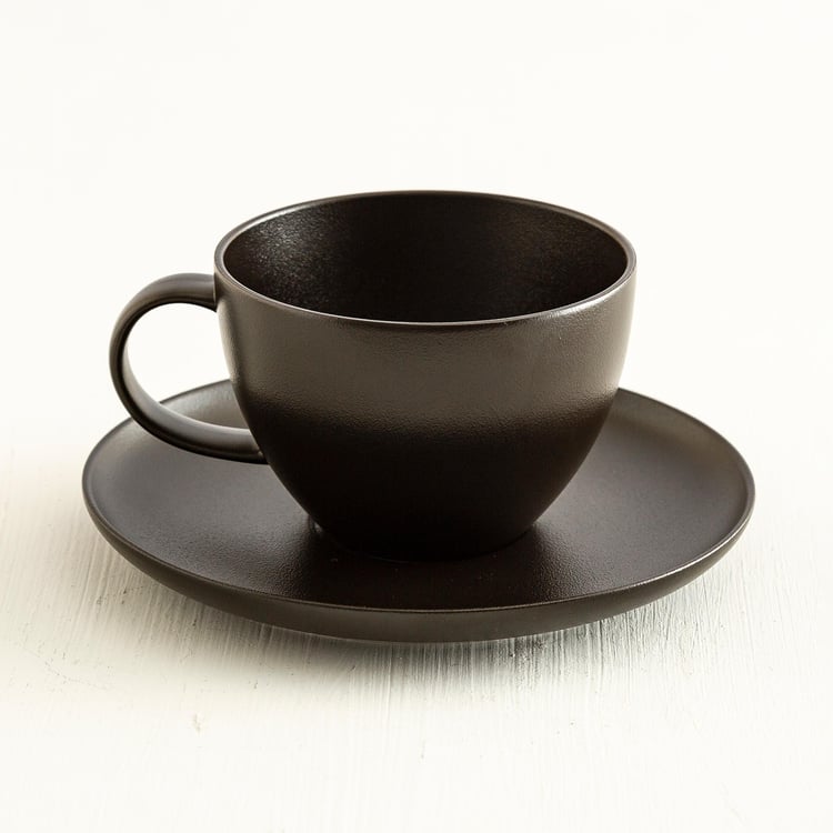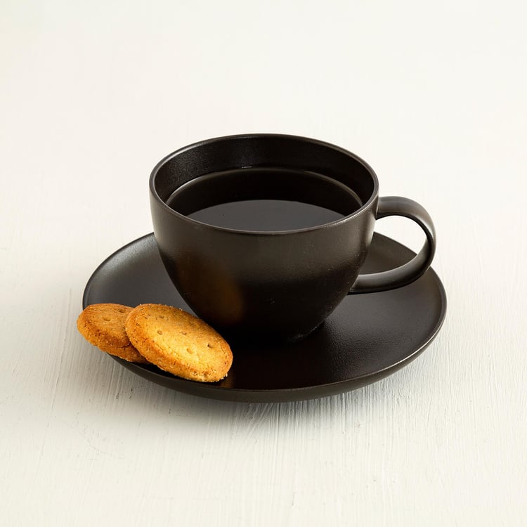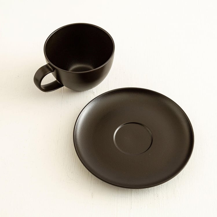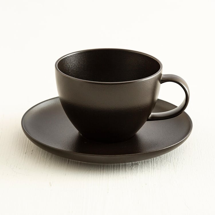 Altos Black Solid Porcelain Cup And Saucer Set - 350 ml - 2 Pcs