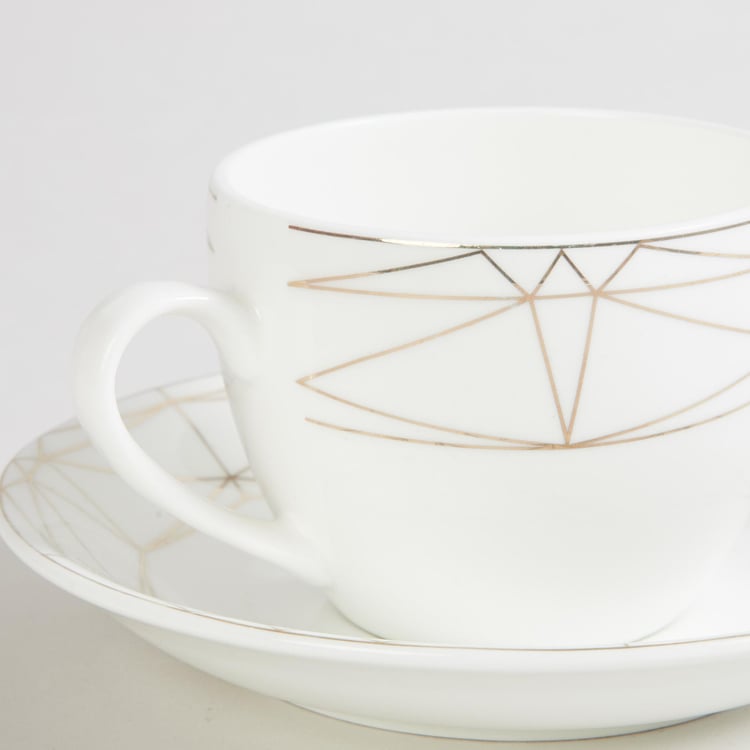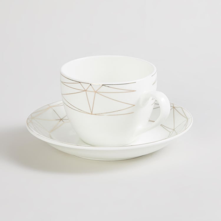 Fiesta Lea White Printed Bone China Cup And Saucer - 2Pcs