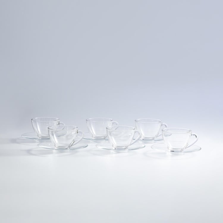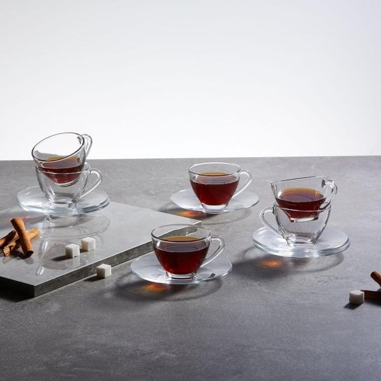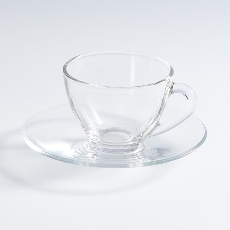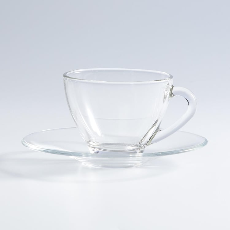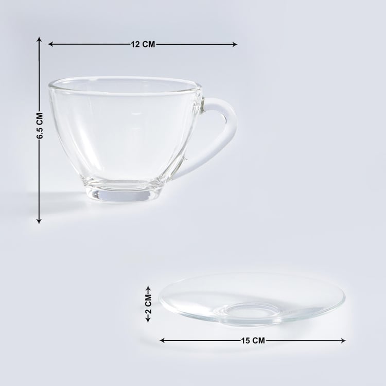 Designed from crystal glass into alluring cups and saucers, this beverage set makes a fine collection.