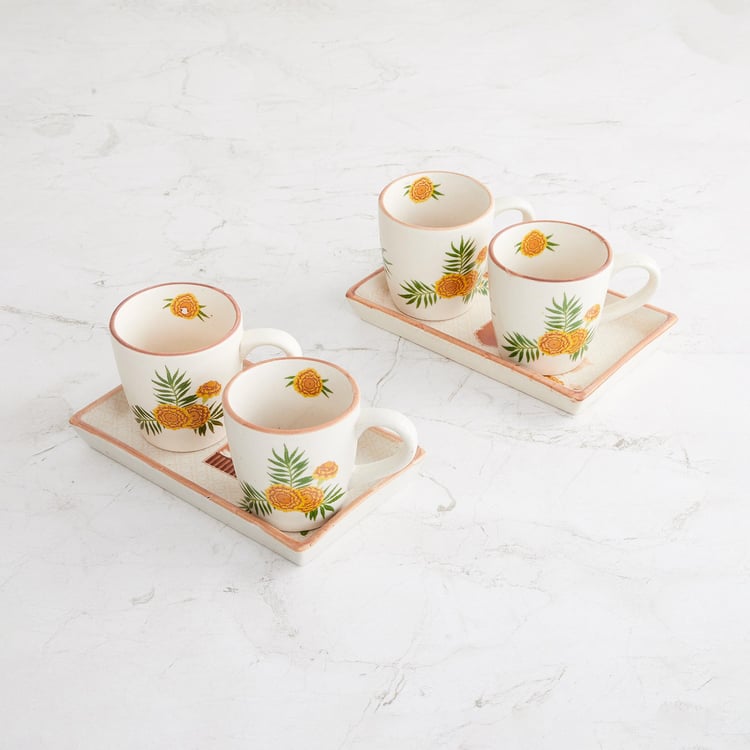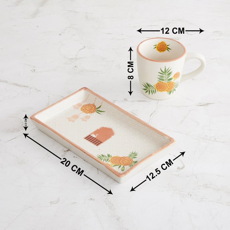 Prosperity Multicolour Printed Stoneware Mug and Tray Set - 230 ml - 6Pcs