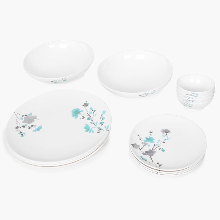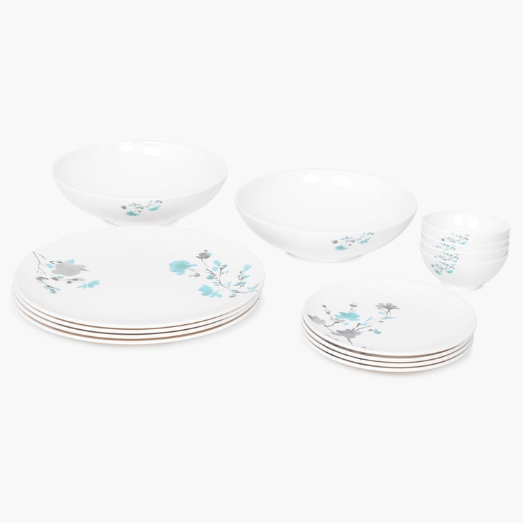 4 Dinner Plates, 4 Side Plates, 4 Katori, 2 Serving Bowl.