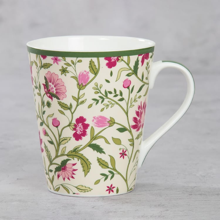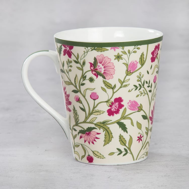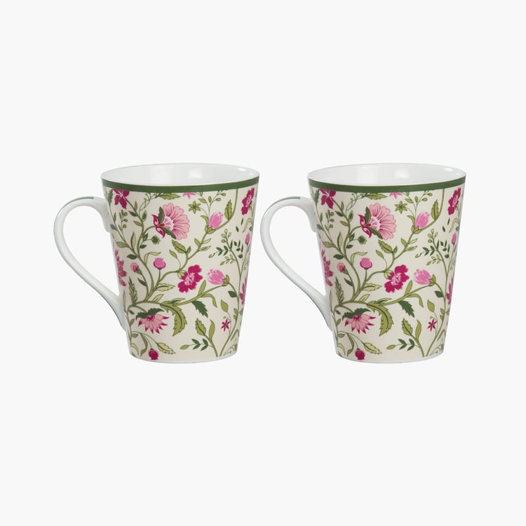 Clay Craft India Circus Rose Mellow Multicolour Ceramic Milk Mug - 330ml - Set of 2