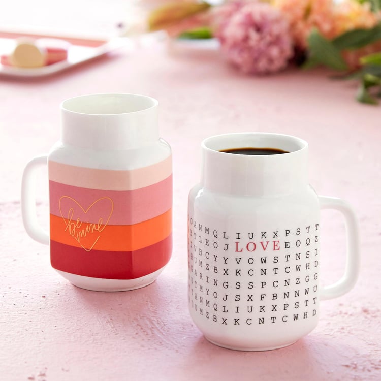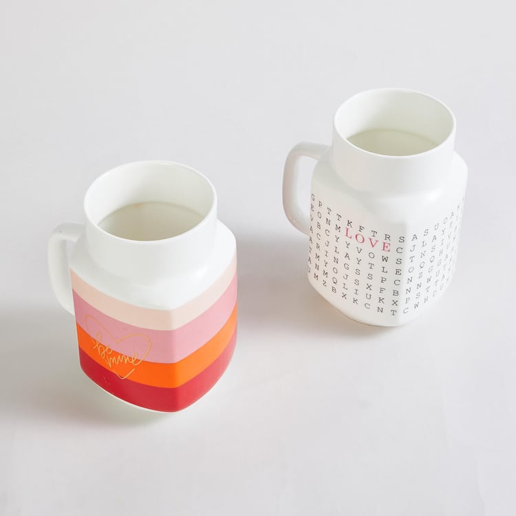 Love Forever Set of 2 Bone China Printed Mason Mugs - 550ml