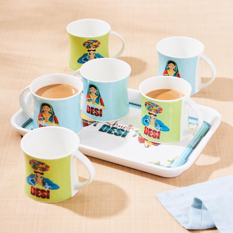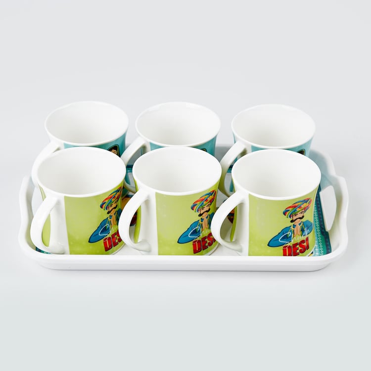 Luke Mad For India 7Pcs Bone China Coffee Mugs with Tray - 200ml