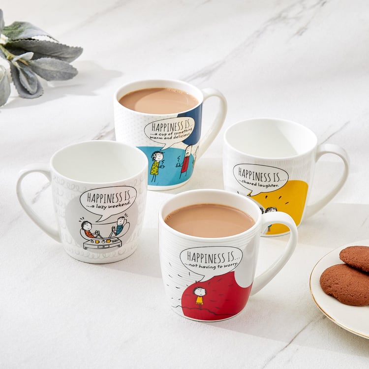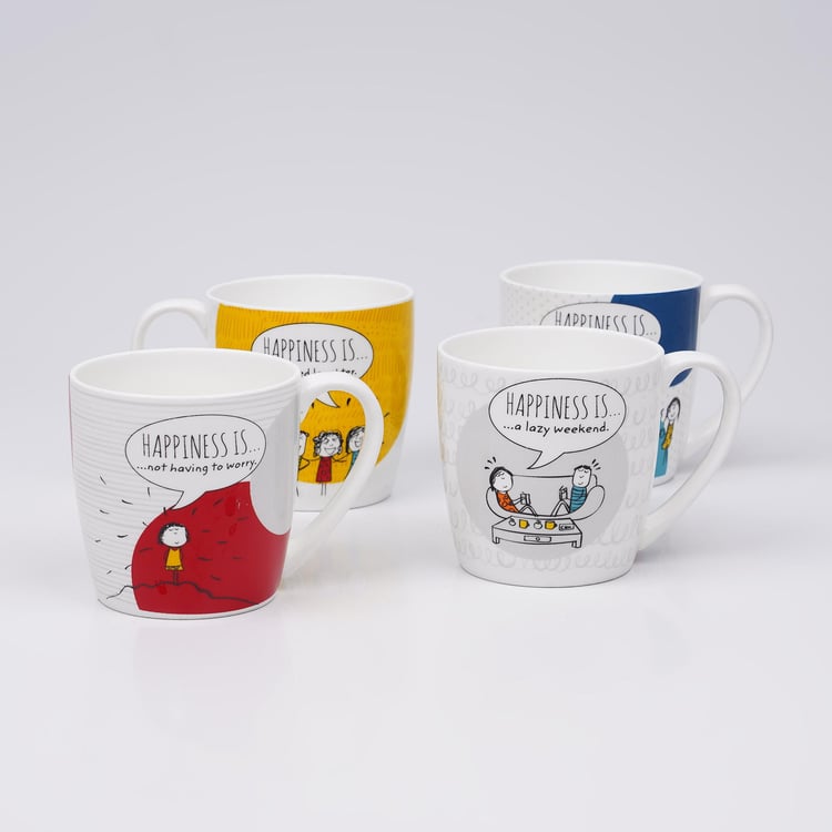 Melina Doris Set of 4 Bone China Printed Coffee Mug - 240ml