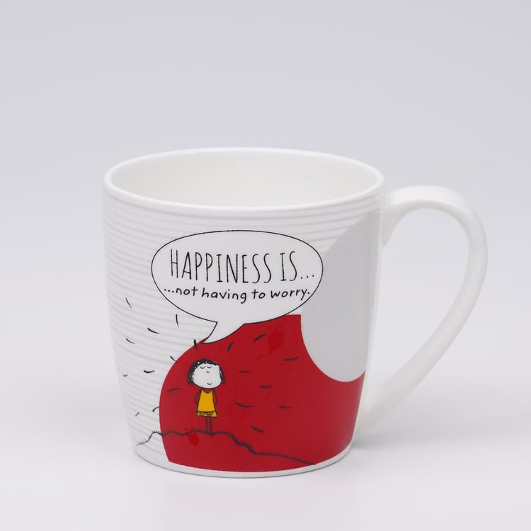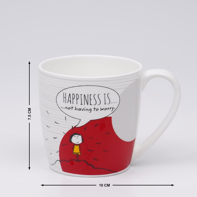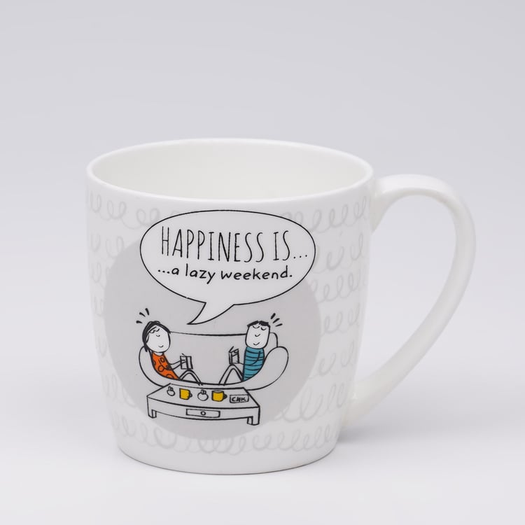 Defined by a printed design on its surface, this coffee mug is a great way to enjoy your morning brew. It has been masterfully crafted from fine-quality material that imparts a ceramic glaze, making for a durable and microwaveable to your crockery set that is chip-resistant as well.