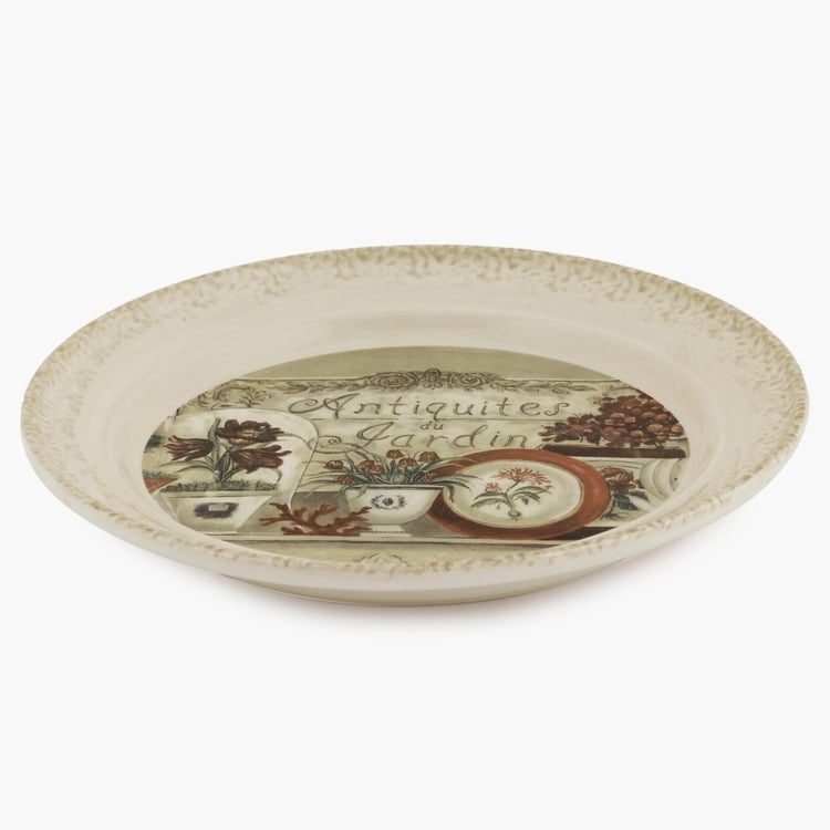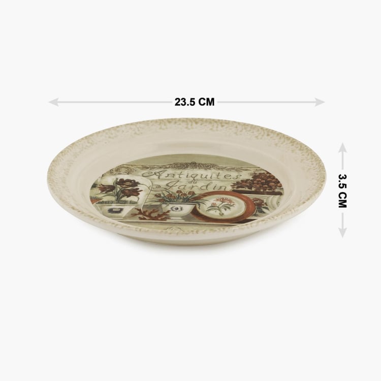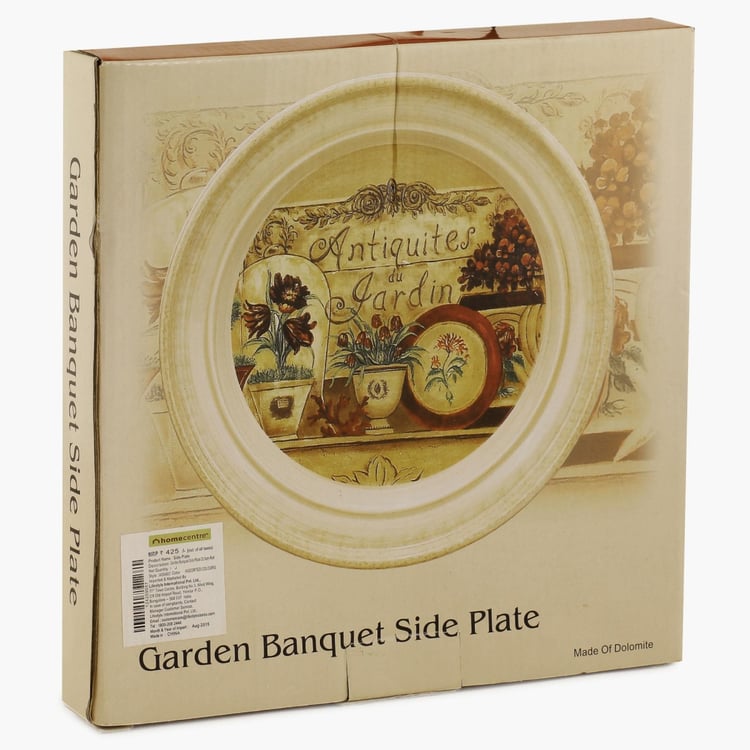 A beautiful print inspired from the English countryside, makes this Side Plate a classic addition to your dinner set. Crafted from Dolomite, it is safe for Microwave, oven, freezer and dishwasher.