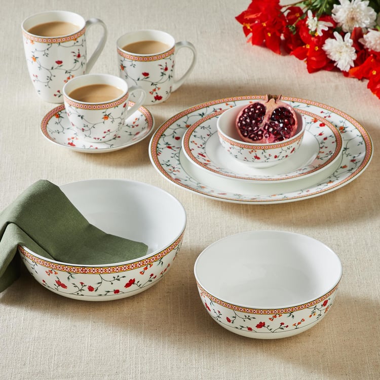 Spice up your dinnerware with this side plate. It comes from a versatile range of products and is made from sturdy material like Bone China. It is designed with a floral print on the surface and has a glazed finish in order to avoid the absorption of food. It is freezer and dishwasher-safe.