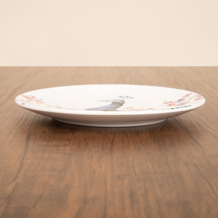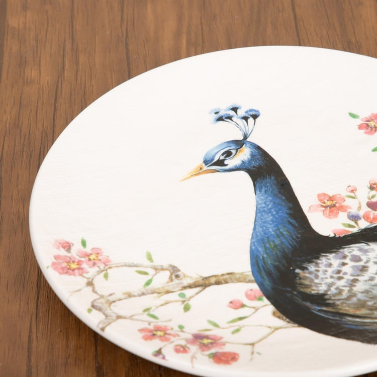 This sleek plate with an eye-popping peacock print maintains your sophisticated theme, no matter what the occasion is.