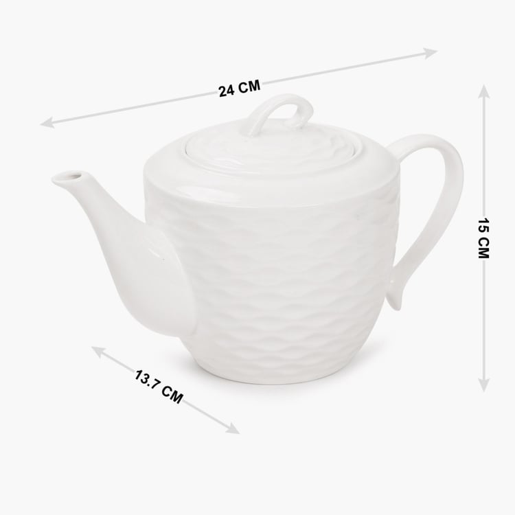 Brook White Solid Ceramic Microwave Safe Tea Pot - 1000 ml