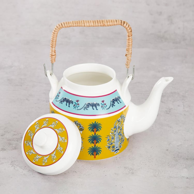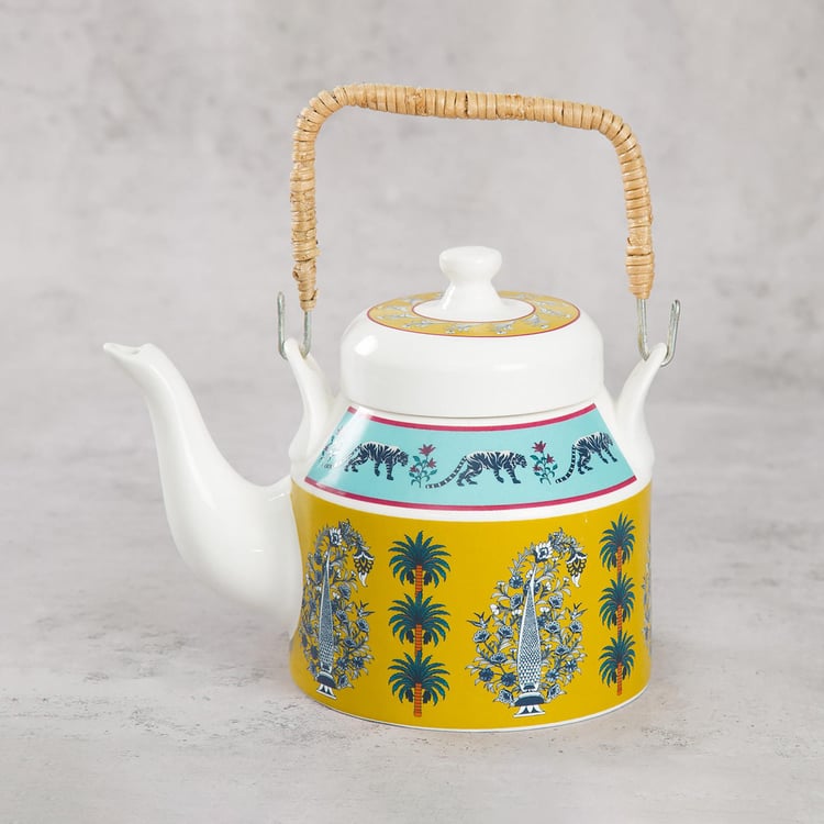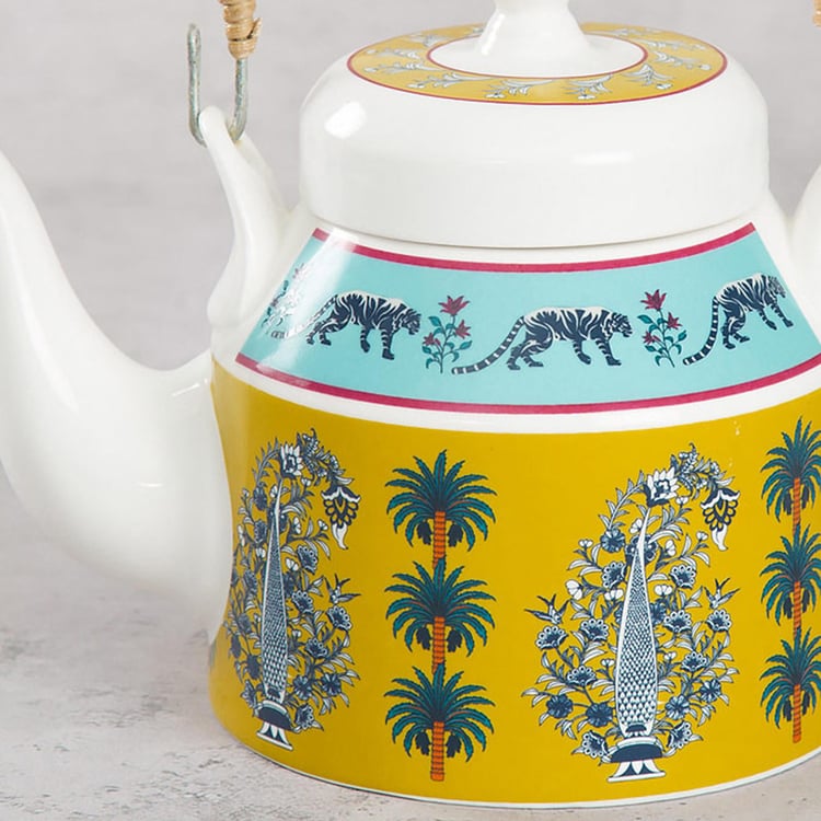 Clay Craft India Circus Mystical Garden Multicolour Ceramic Desi Kettle - 1L