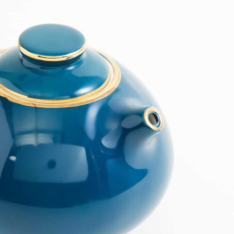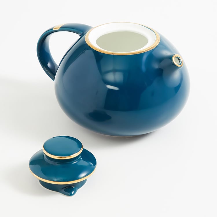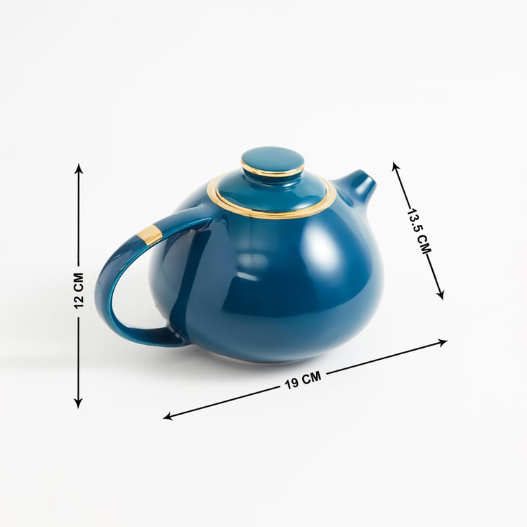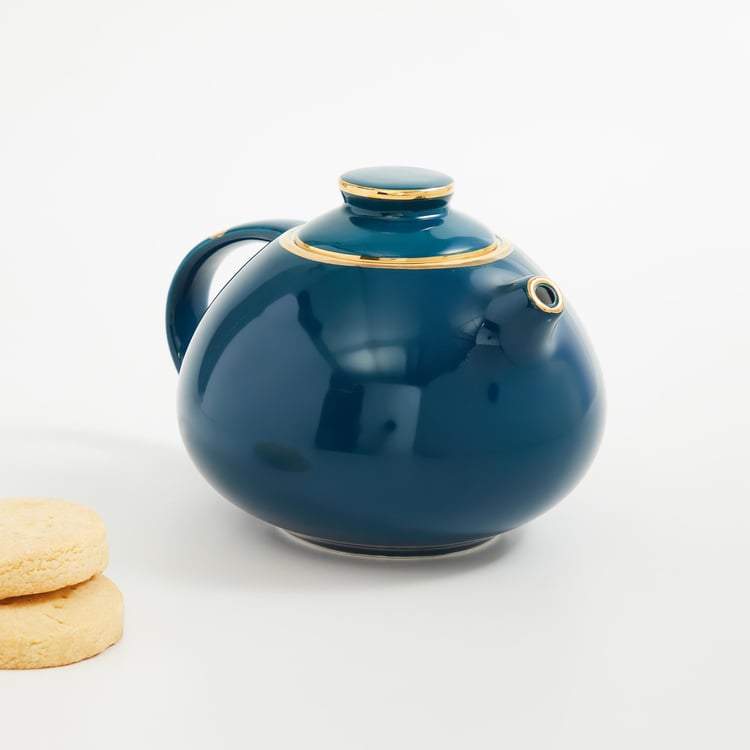 Get The Look-Velvetica Green & Gold Solid Bone China Tea Pot with Lid - 900 ml
