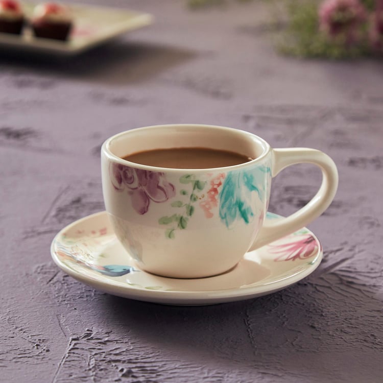 Update your tea set collection with this cup and saucer. Made from ironstone, it features glazing to make the interior nonporous, which prevents the absorption of food and flavours. The floral prints enhance its looks. This set is safe for use in the microwave as well as the dishwasher.