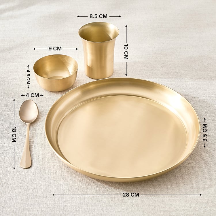 1 Dinner Plate, 1 Katori, 1 Tumbler, 1 Spoon