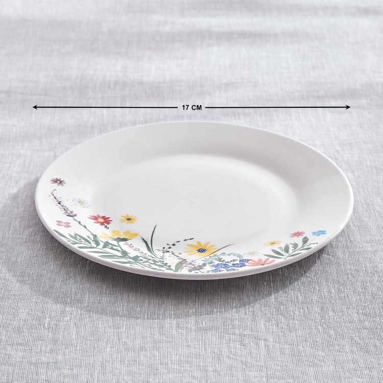 Dinner Plate : 25 cm, Side Plate : 17 cm, Serving Bowl : 18 cm x 8 cm, Cereal Bowl : 16 cm x 8 cm, Katori : 10 cm x 5 cm