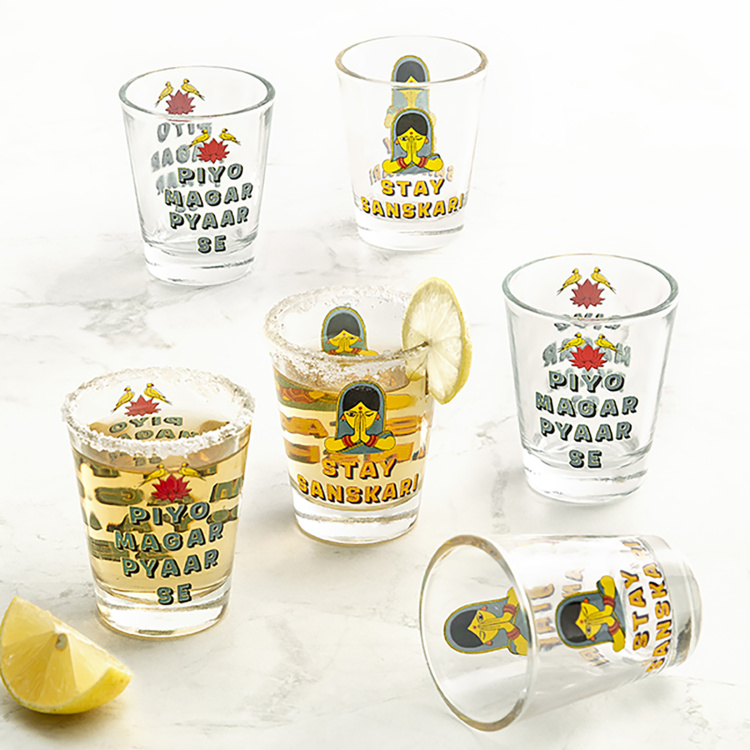 Highway Dhaba-Carson Printed Shot Glasses - Set of 6 Pcs