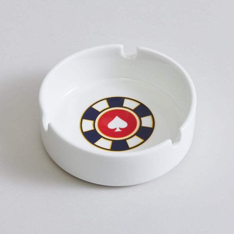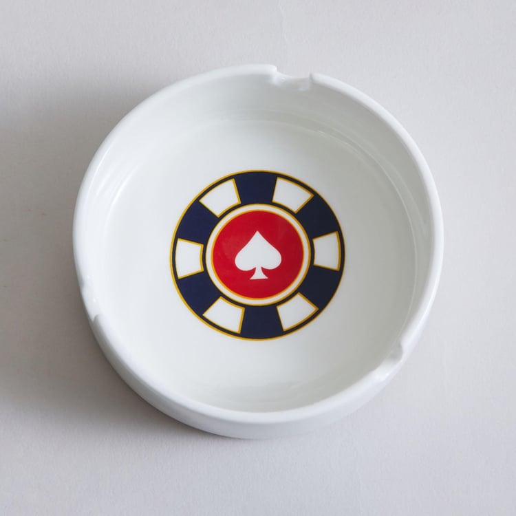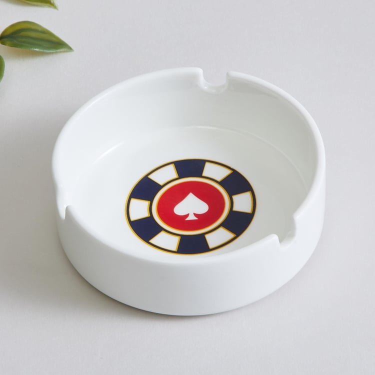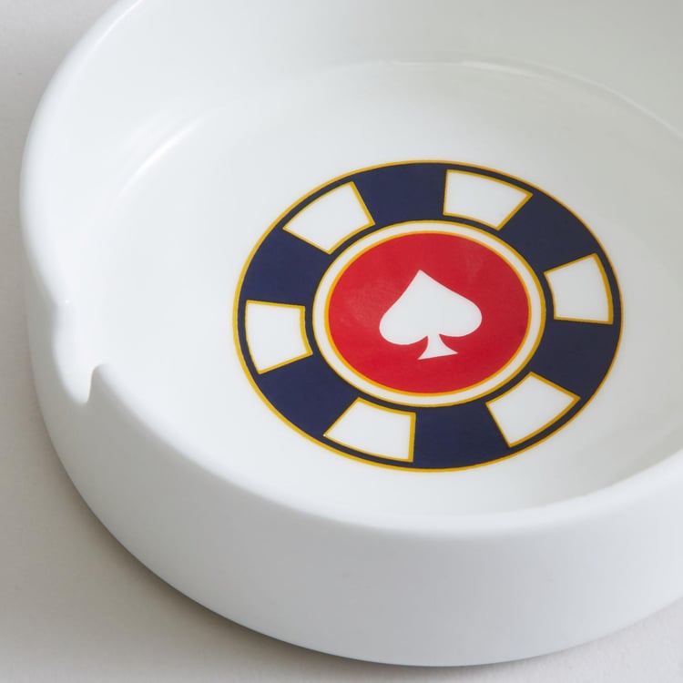 Raisa Deck Of Cards White Printed Ceramic Round Ash Tray