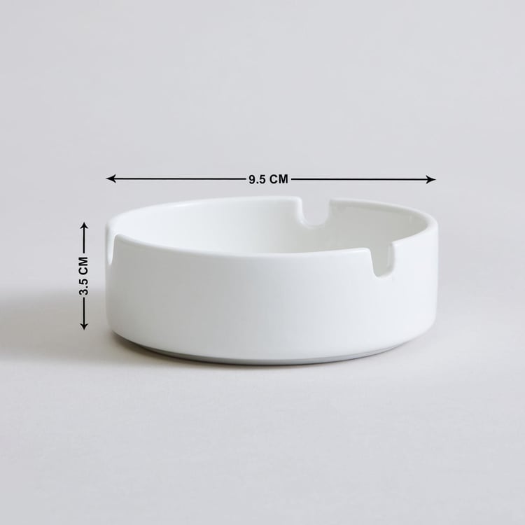Let your parties reflect the blend of convenience, fun, and aesthetics with this ashtray. The ashtray is made from bone china which gives it a delicate look. The glazed finish makes the body non-porous which prevents the absorption of food material making the product long-lasting. It has a printed surface and a round shape for your guest's convenience.