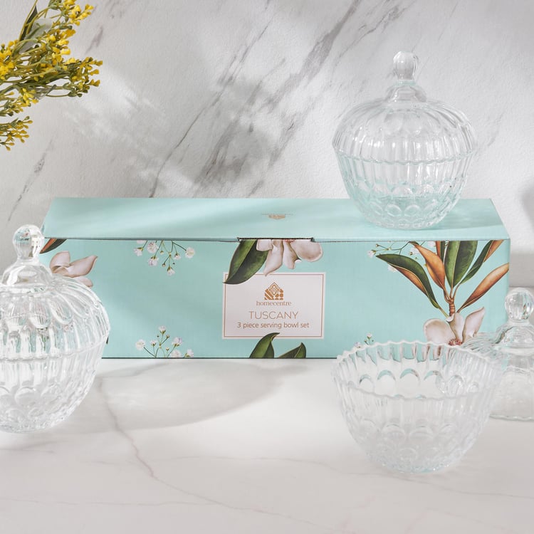 Abaco Maina Glass Serve and Store Bowl with Lid - 400ml - Set of 3