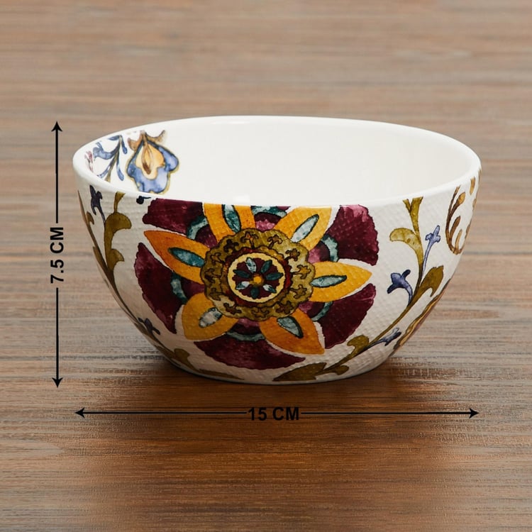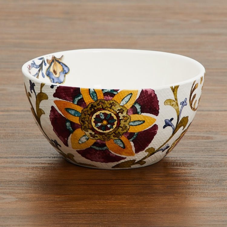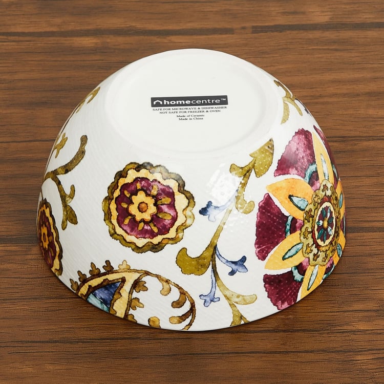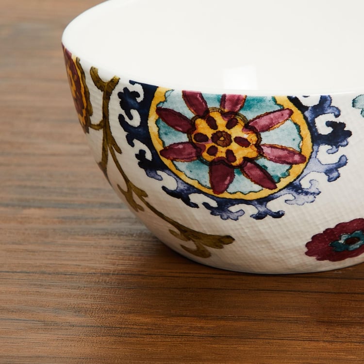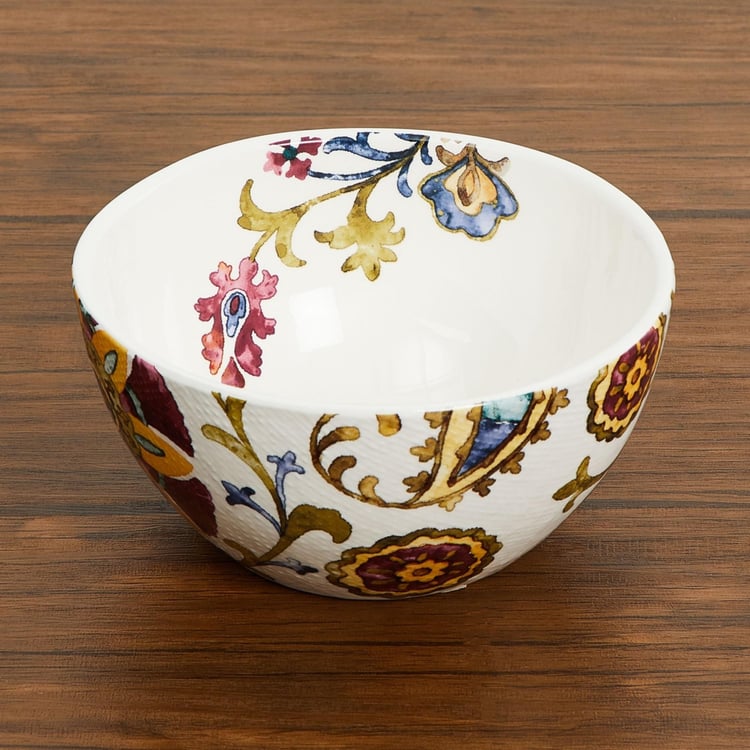 Alora Fiore White Ironstone Microwave Safe Printed Cereal Bowl - 750 ml