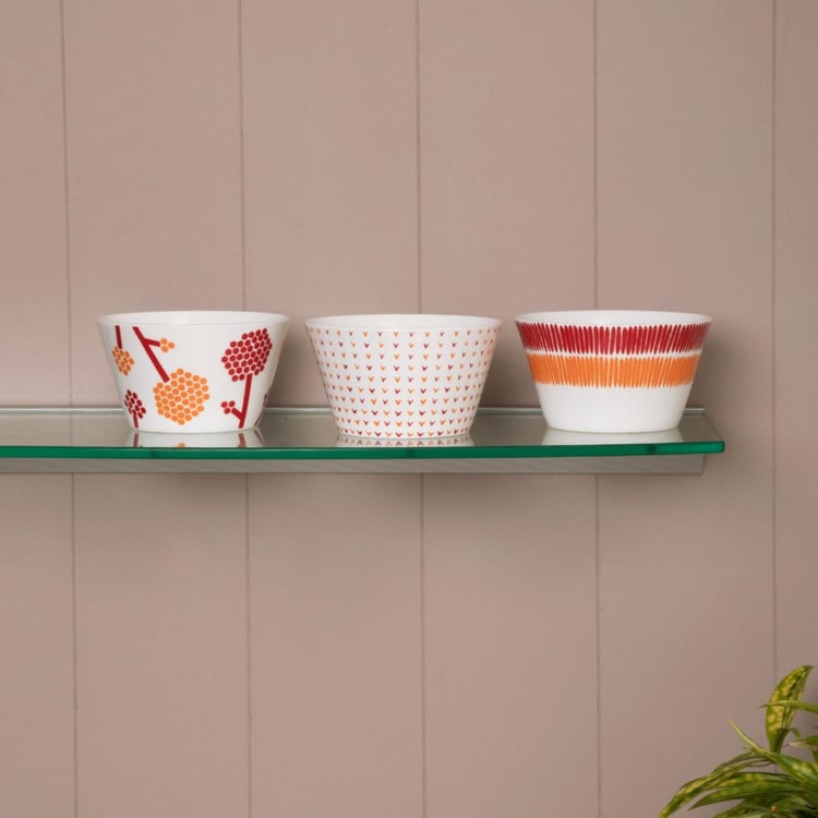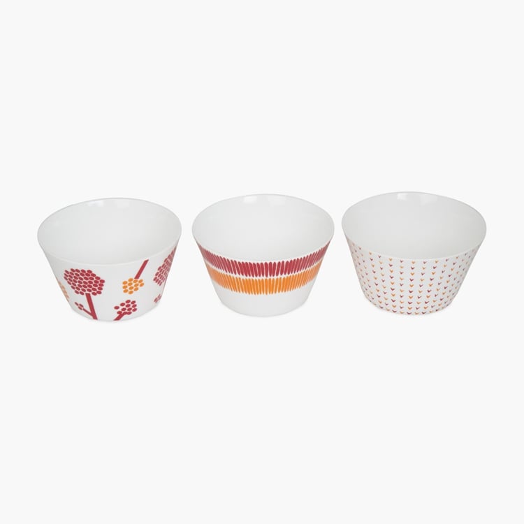 EMILY-ROSA Printed Bone China Bowl Set- Set Of 3 Pcs.